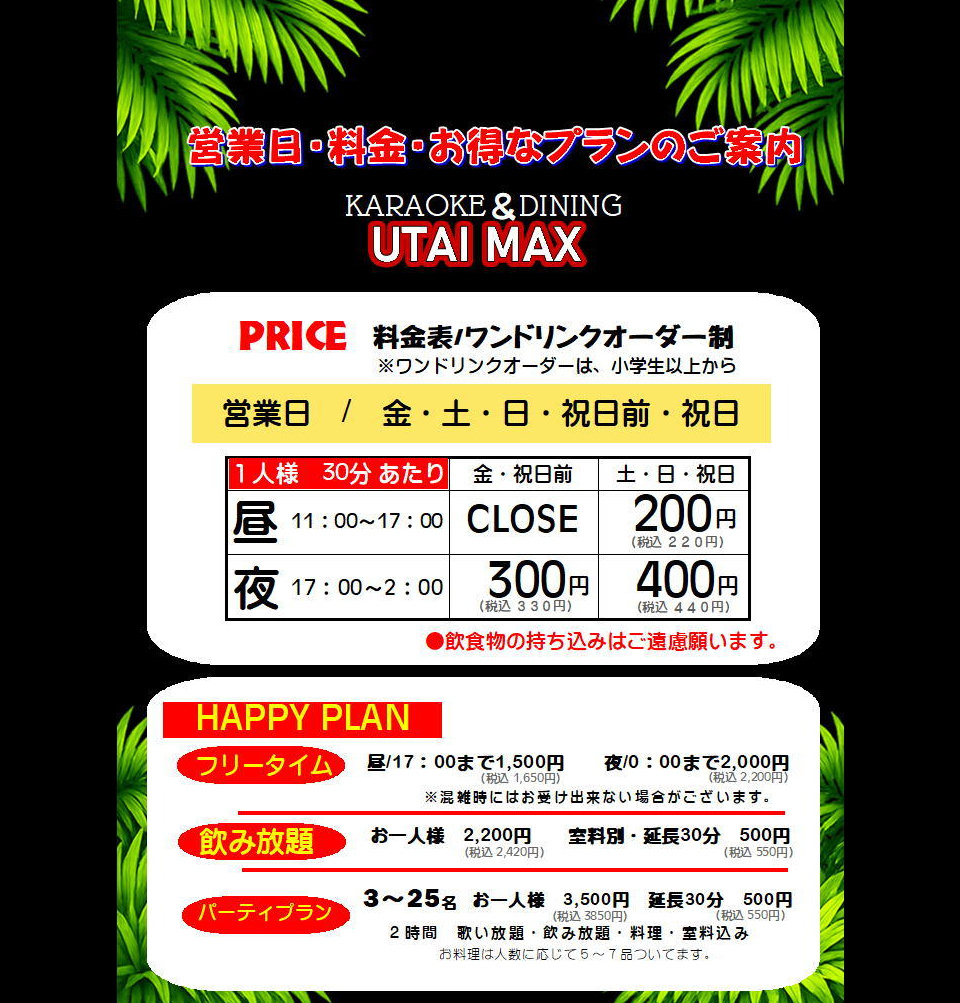 カラオケ歌いMAXには、様々なタイプのお部屋が用意されています。二人きりで過ごしたい、仲間とワイワイ楽しみたい、大きな部屋でパーティーをしながら歌いたいなど、どんなご要望にもお応えできます。下にお部屋の一部をご紹介いたします。